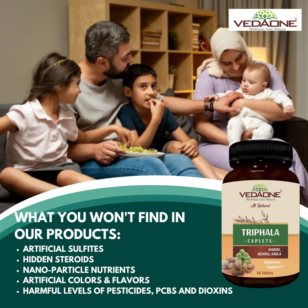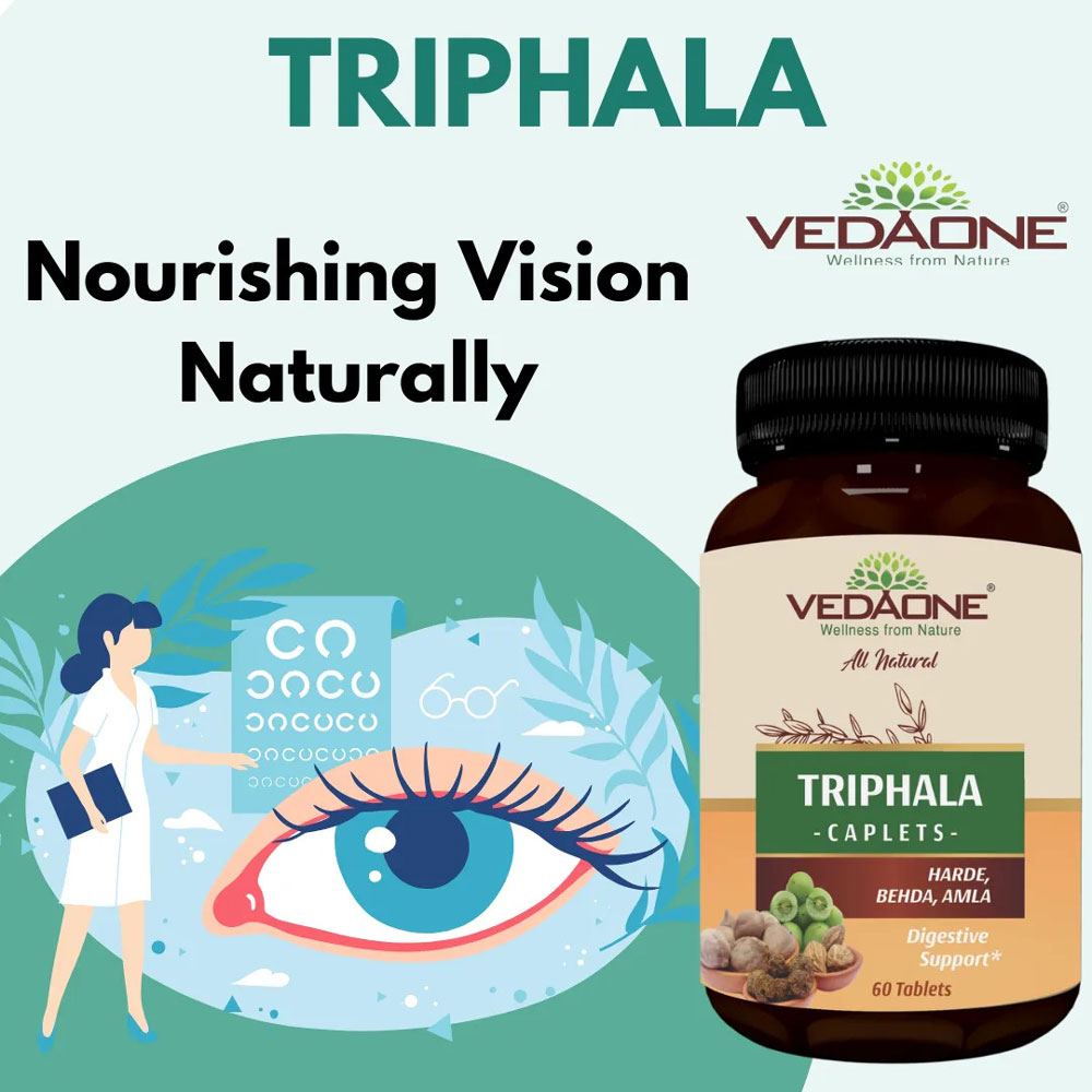 Vedaone Triphala Caplets is a time-tested formulation containing Amla, Harde, and Behda. It is used for the treatment of constipation. Triphala reduces fat deposit in the intestines and eliminates intestinal toxins. This Ayurvedic Medicines is also advised for rejuvenation, improves vision, good for people of all ages. Triphala Caplets of 750mg each