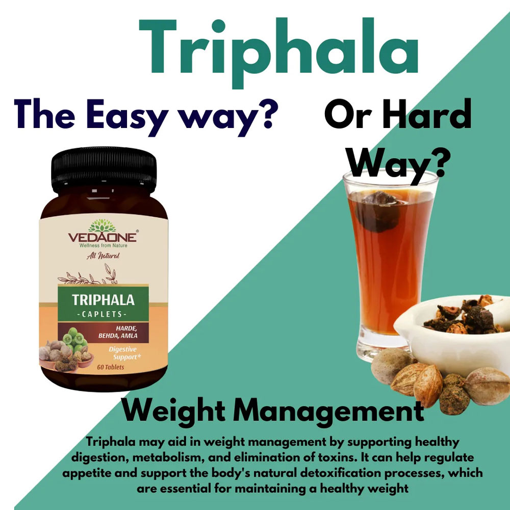 Vedaone Triphala Tablets are primarily used to support healthy digestion, relieve constipation, aid in natural detoxification, and improve overall gut health. They also boost immunity, support weight management, and contribute to skin and eye health.